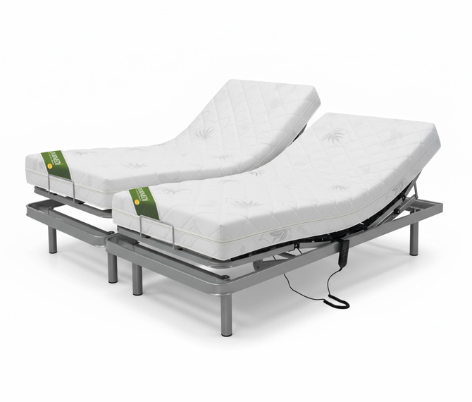 Nas medidas de casal, os dois leitos são articulados de forma independente. Possui bateria de emergência em caso de falha de energia.