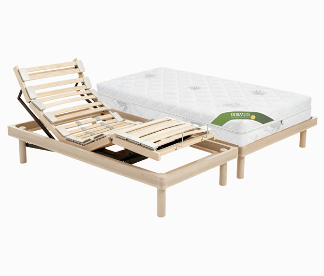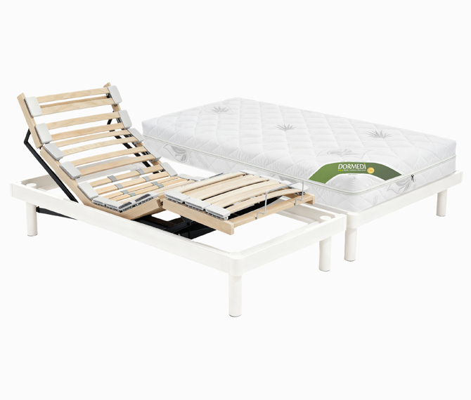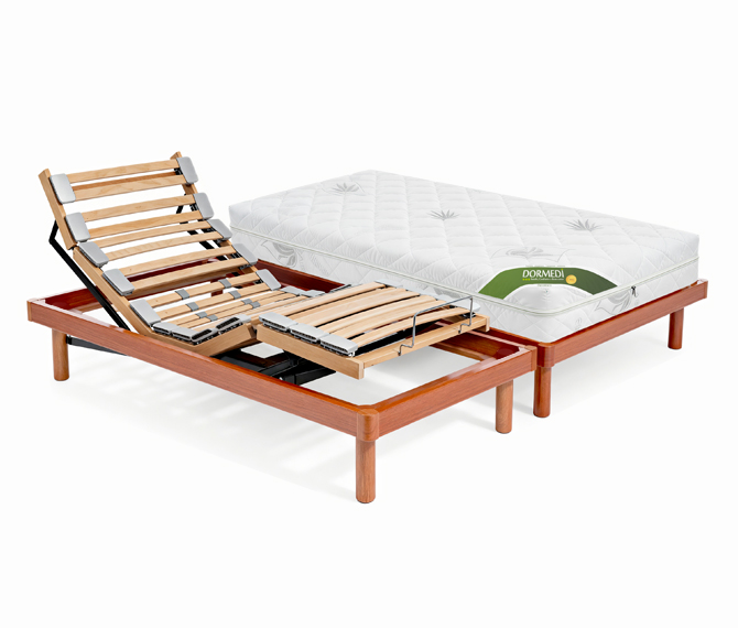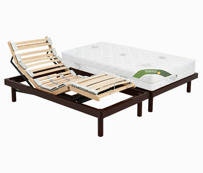 Cama articulada de casal com 2 estrados Articulados emparelhados de Madeira 5 planos + 2 Colchões Visco/aloevera 3D